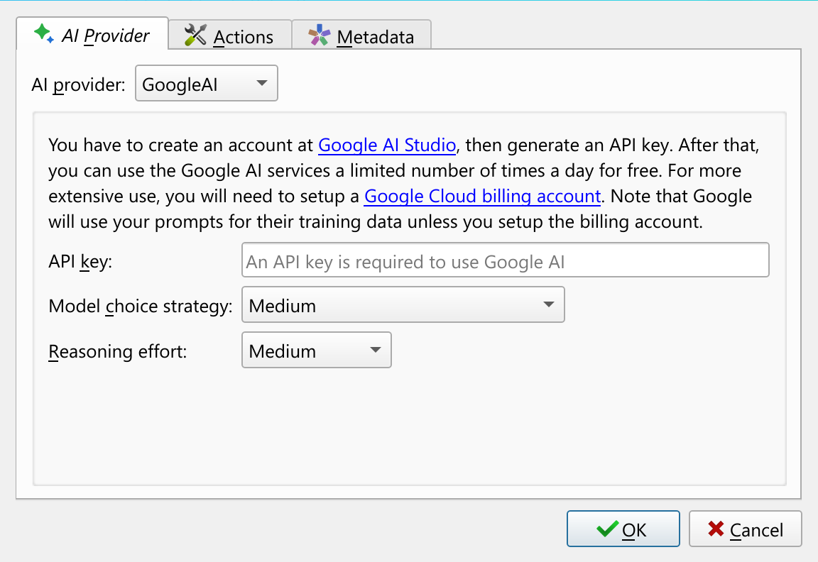 All AI features in calibre are completely opt-in. You must first configure an AI provider before any AI related code is even loaded in calibre. calibre supports both cloud based and local-only AI providers. When you first try to use an AI feature, you will be asked to configure your AI provider and model.