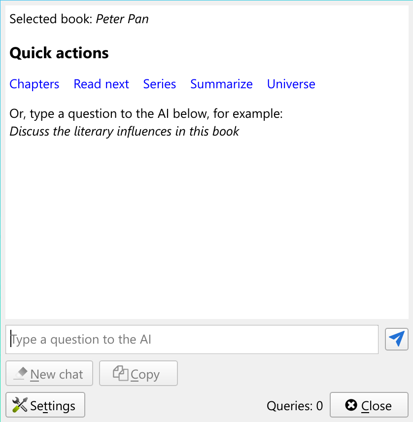 If you want to ask the AI more general questions, right click the View button and choose Discuss selected book with AI.
