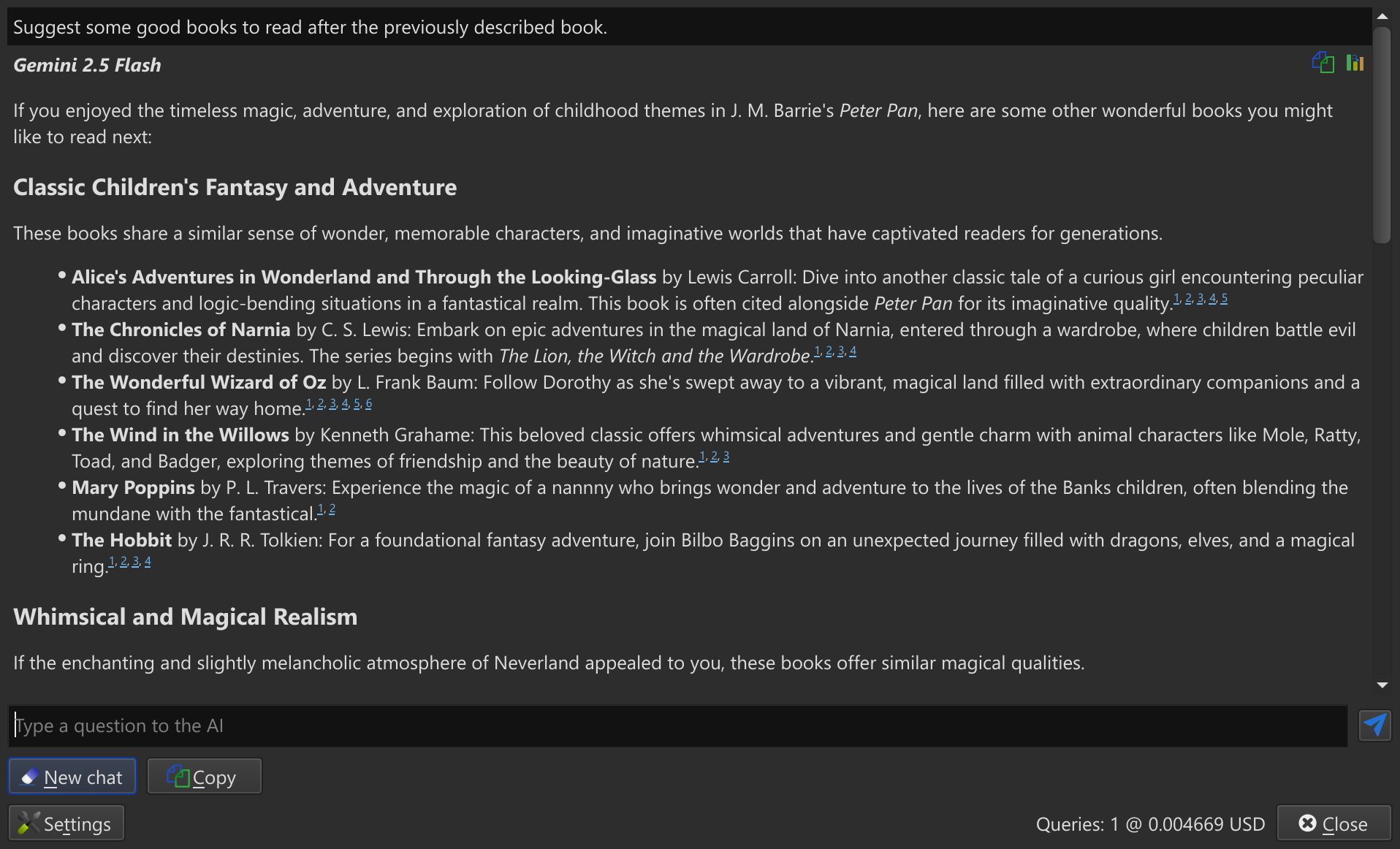 You can now discuss books with AI, asking for what to read next or asking AI questions about the book and related material. Simply right click on a book, choose, Similar books and Ask AI what to read next.
